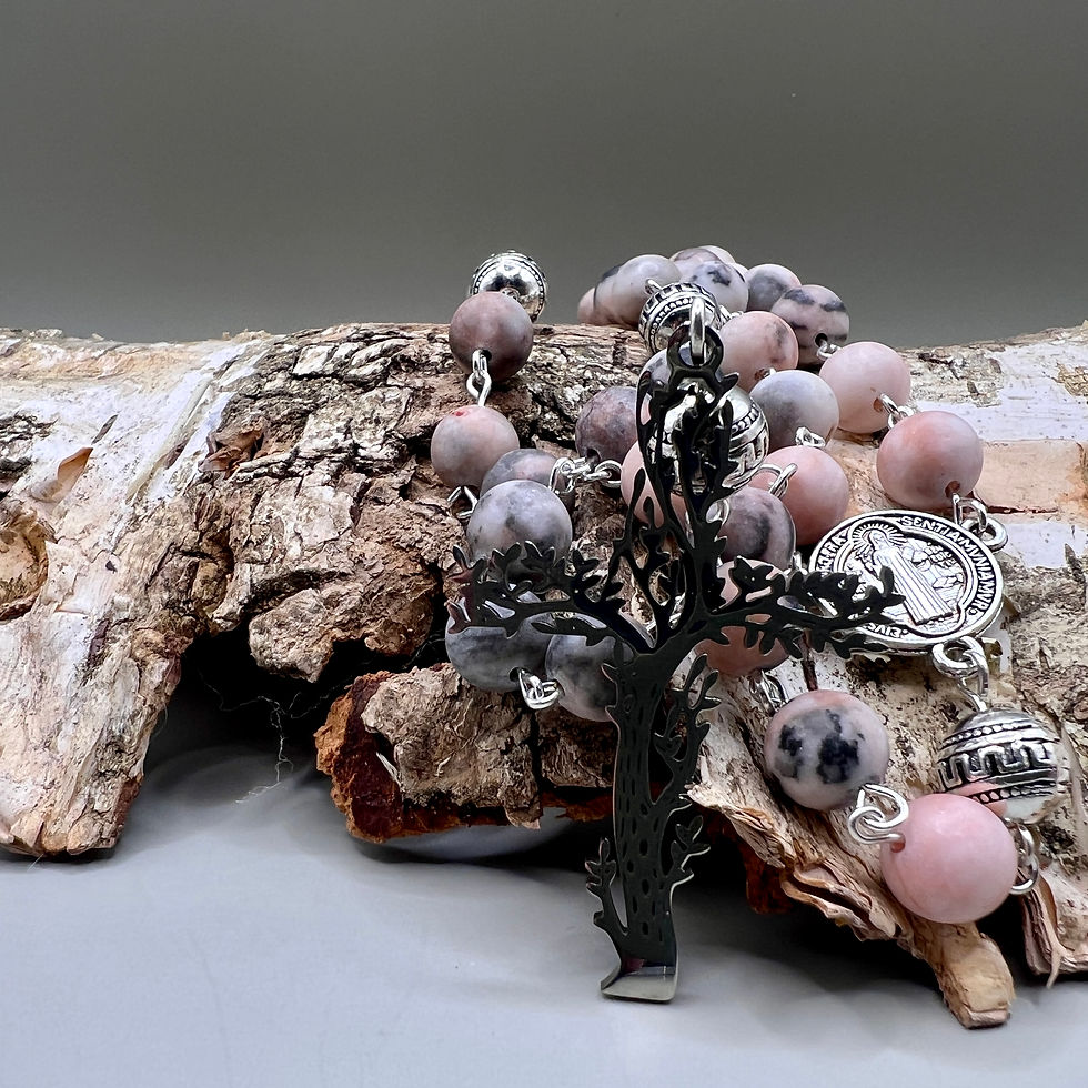 Pink Marble Tree of LIfe Saint benedict Rosary